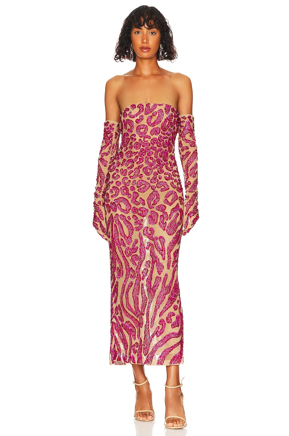 - Midweight mesh fabric with sequin abstract design
