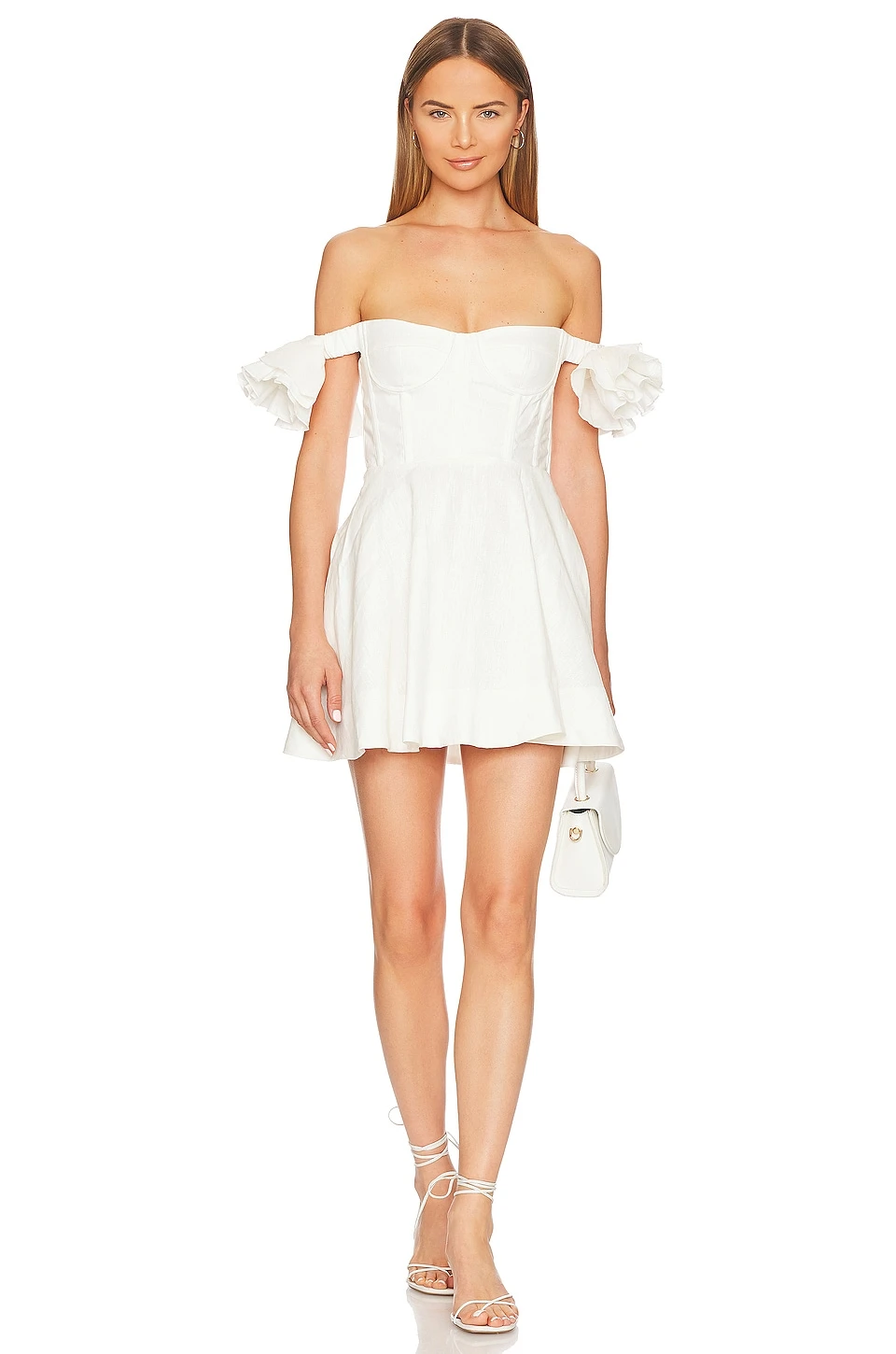Boned bodice - Off shoulder styling with floral accents at sleeves