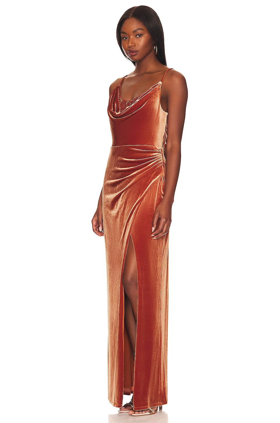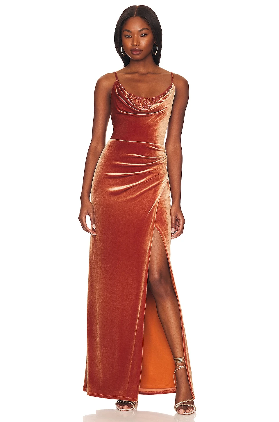 BCBGMAXAZRIA Velvet Evening Dress Cinnamon Stick