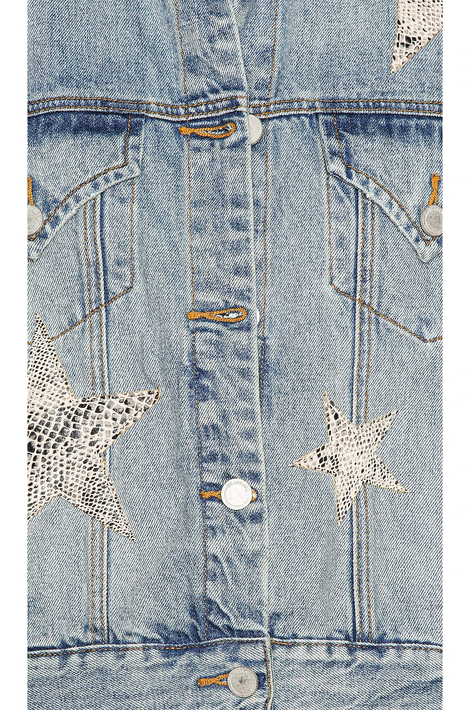 - Snake embossed leather star patches throughout