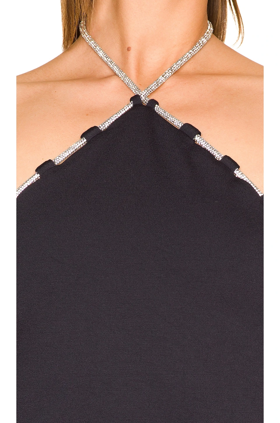 - Crystal embellished cord along neckline and back