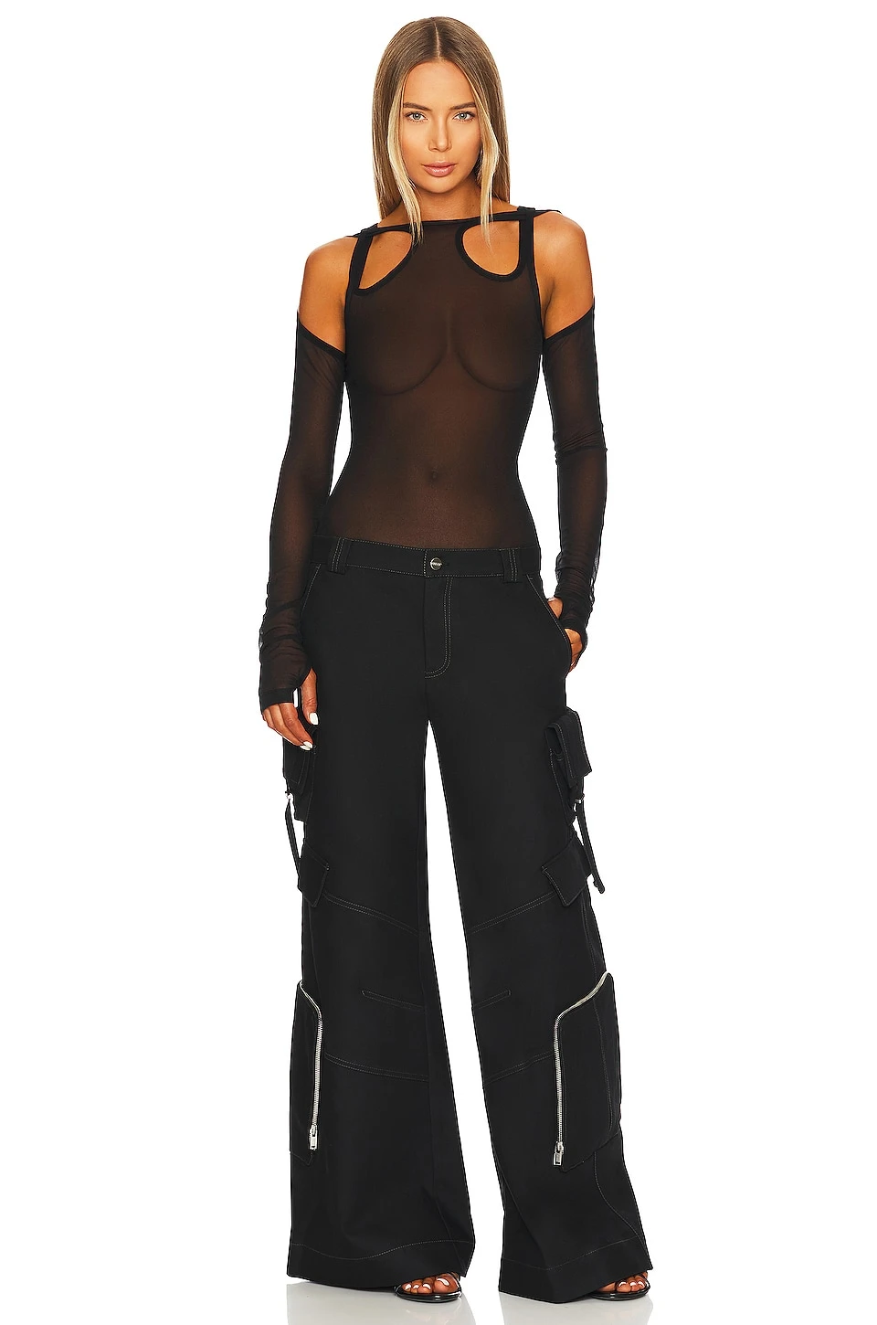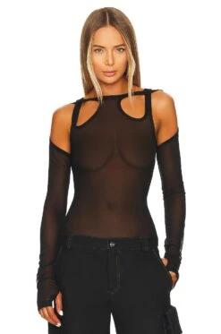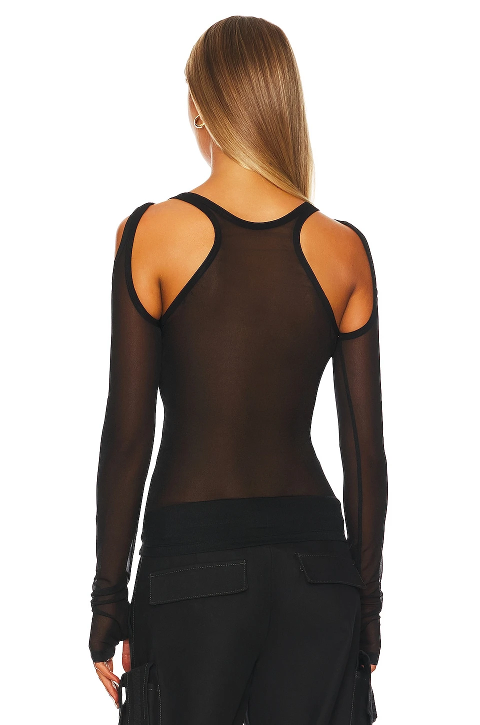 Dion Lee Sheer Shift Loop Long Sleeve Top Black