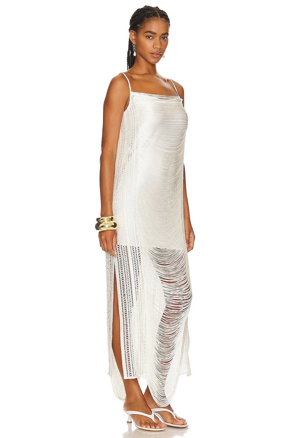 Draped Fringe Maxi Dress White