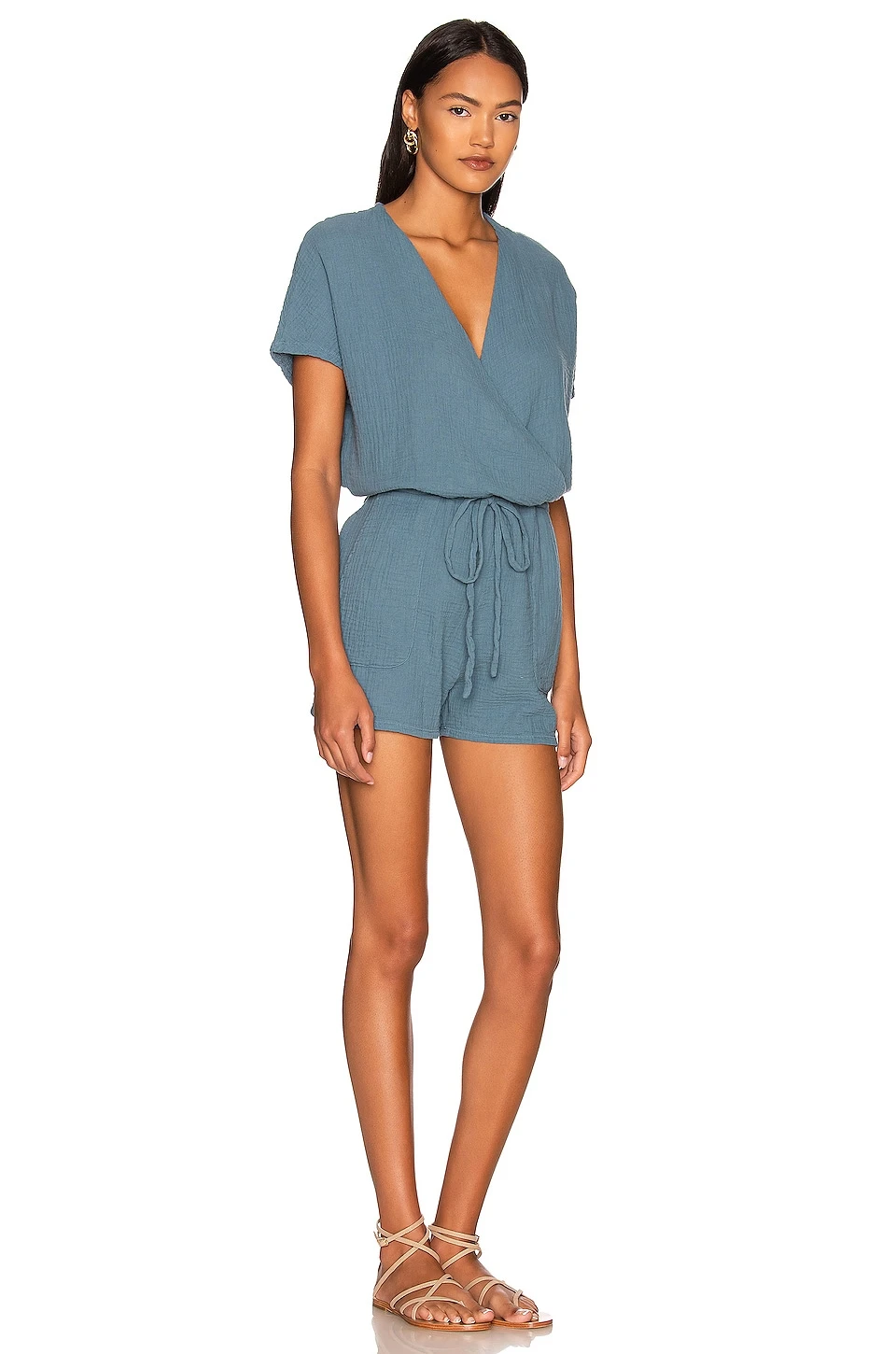 - Lightweight gauze fabric with side seam pockets
