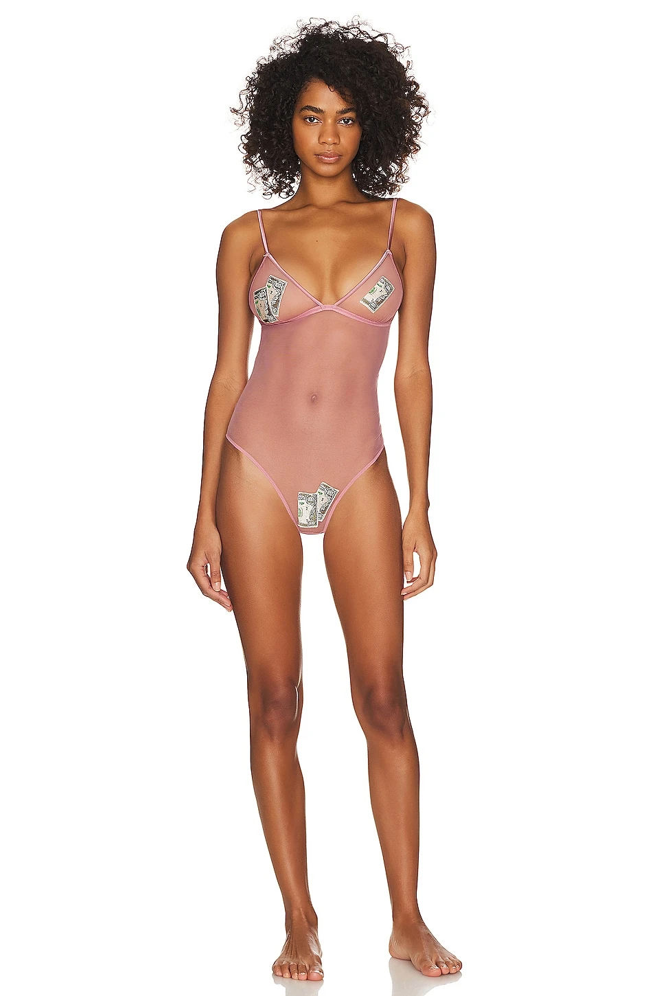 Fleur Du Mal Money Embroidery Bodysuit Rose Gold