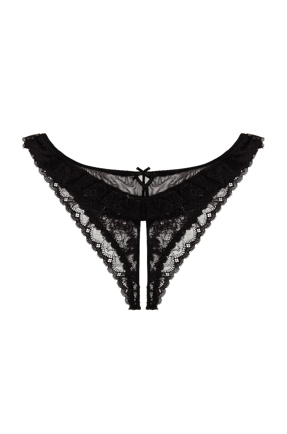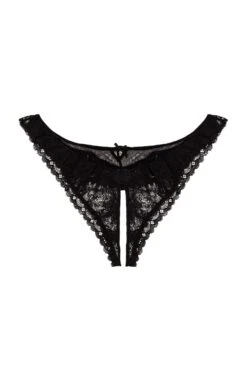 Fleur Du Mal Ruffle Crotchless Cheeky Thong Black