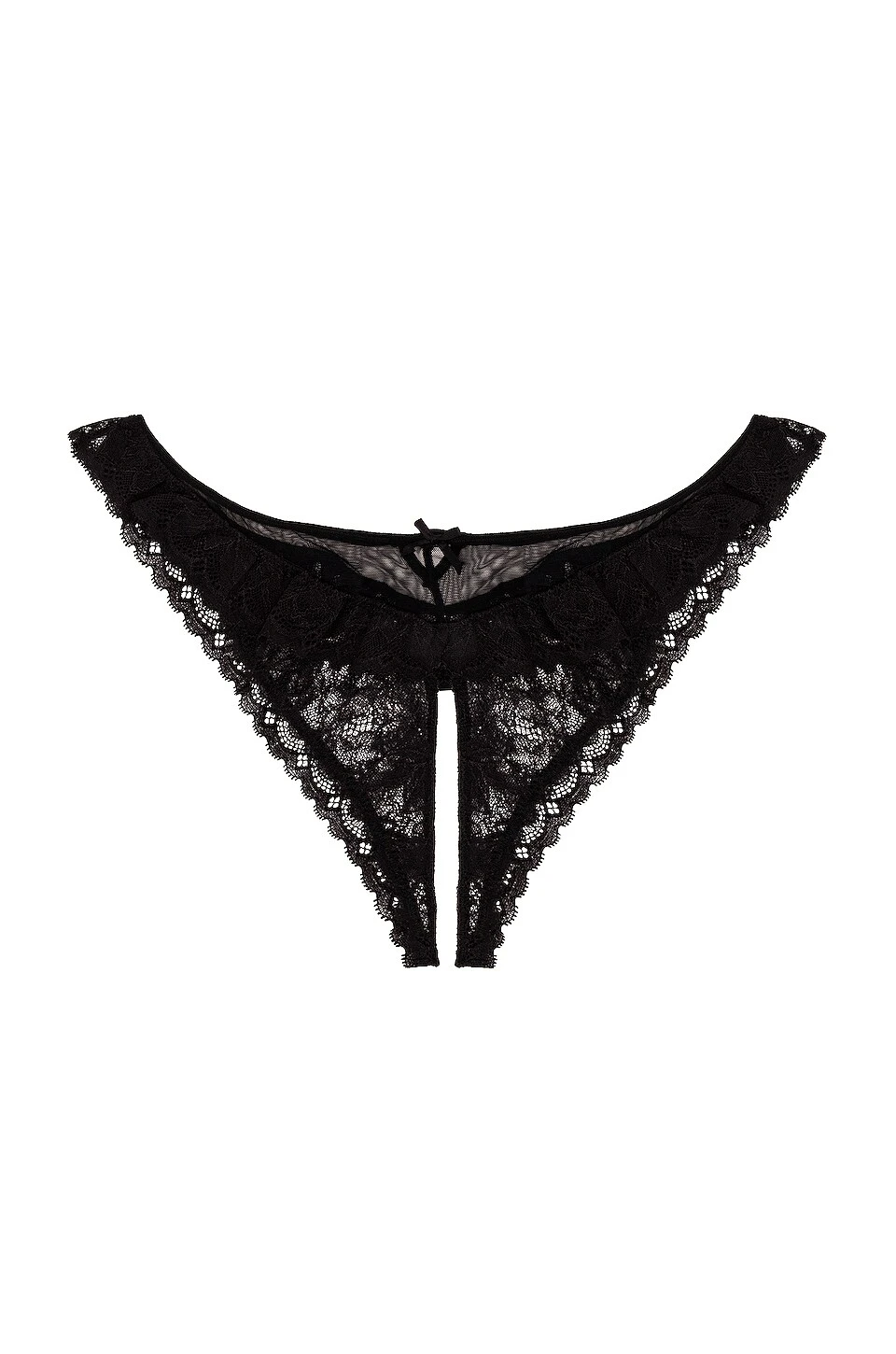 Self 1: 87% polyamide, 13% elastane.Self 2: 92% silk, 8% elastane. Made in China. Hand wash. Crotchless design. Sheer lace fabric throughout. Mini bow accent. Revolve Style No. FLER-WI316. Manufacturer Style No. PY0313.