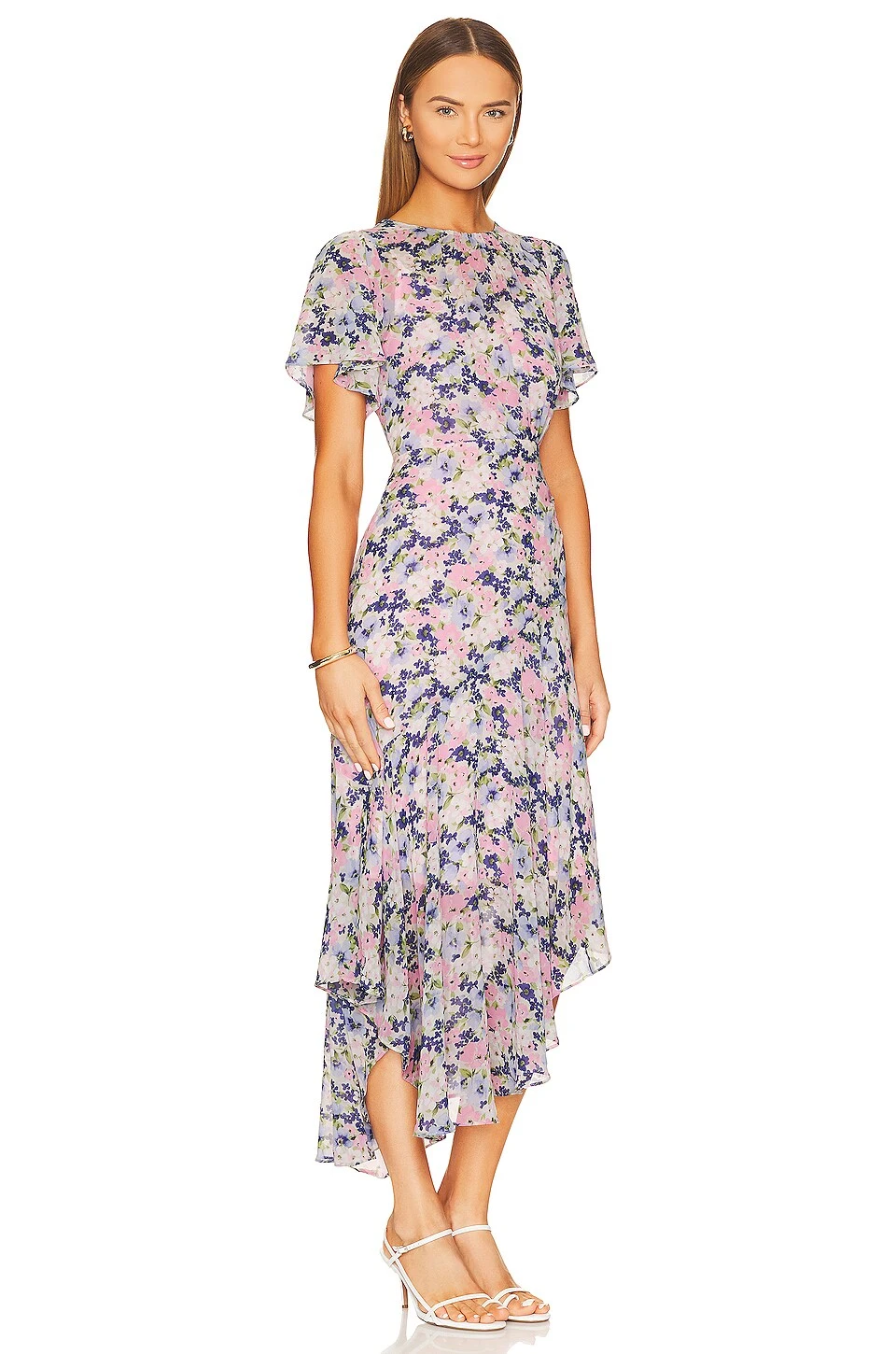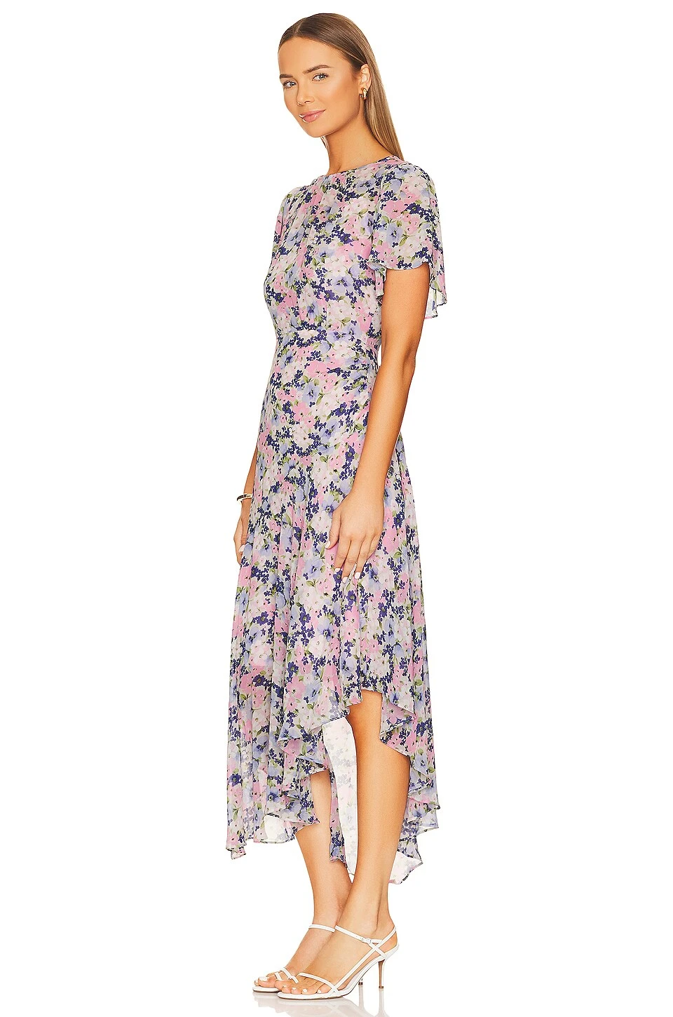 Flutter Sleeve Maxi Dress Pink & Blue Floral
