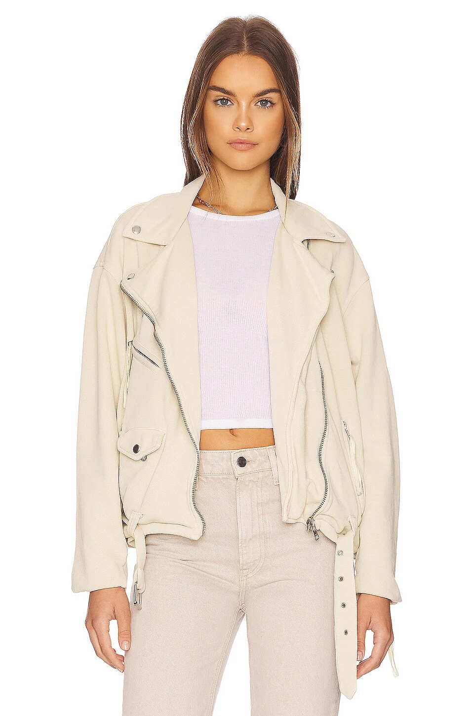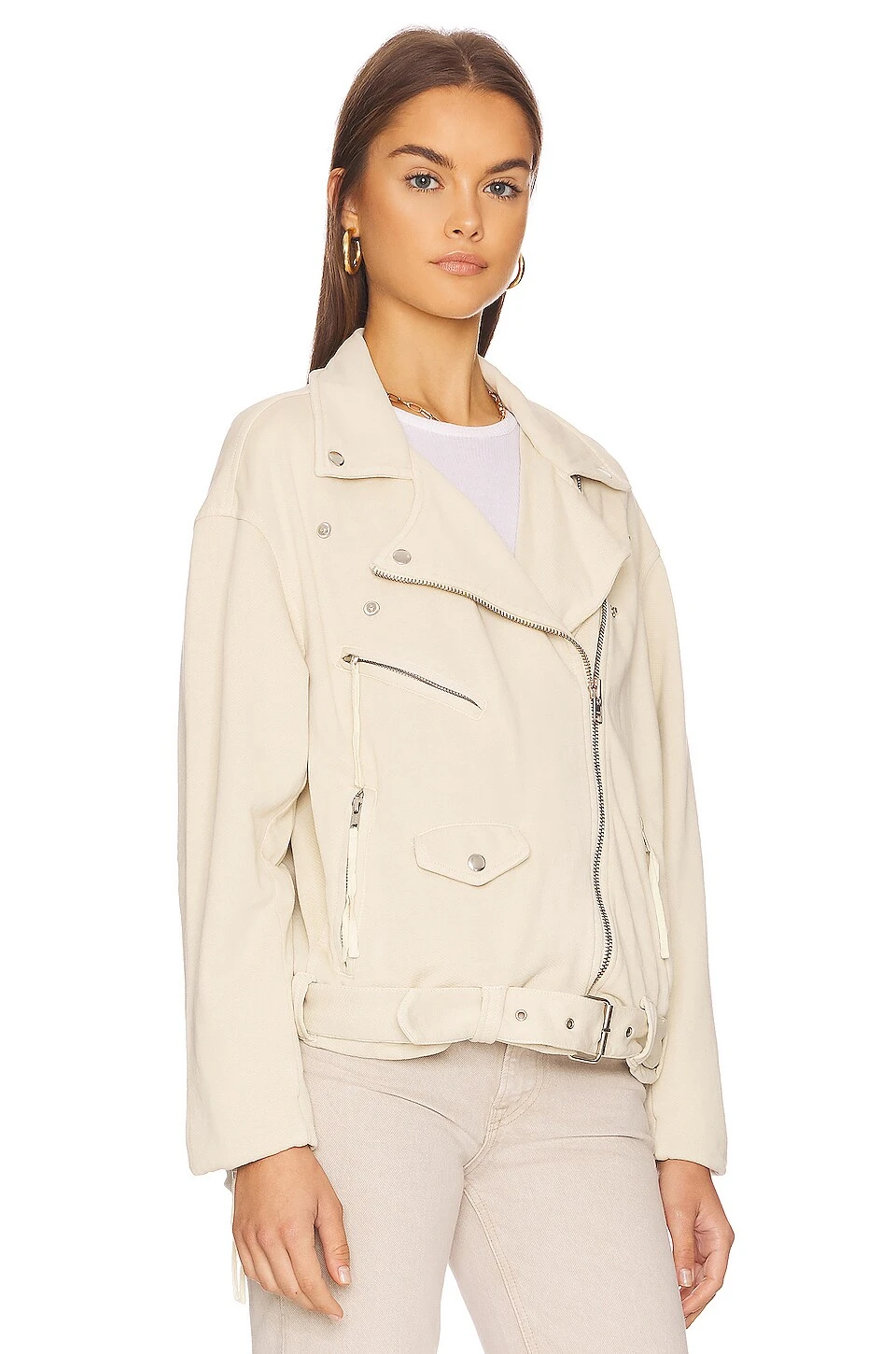 FREE PEOPLE Rebel Rebel Knit Moto Jacket Vanilla Creme