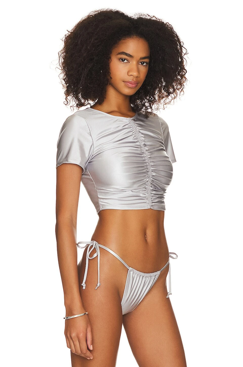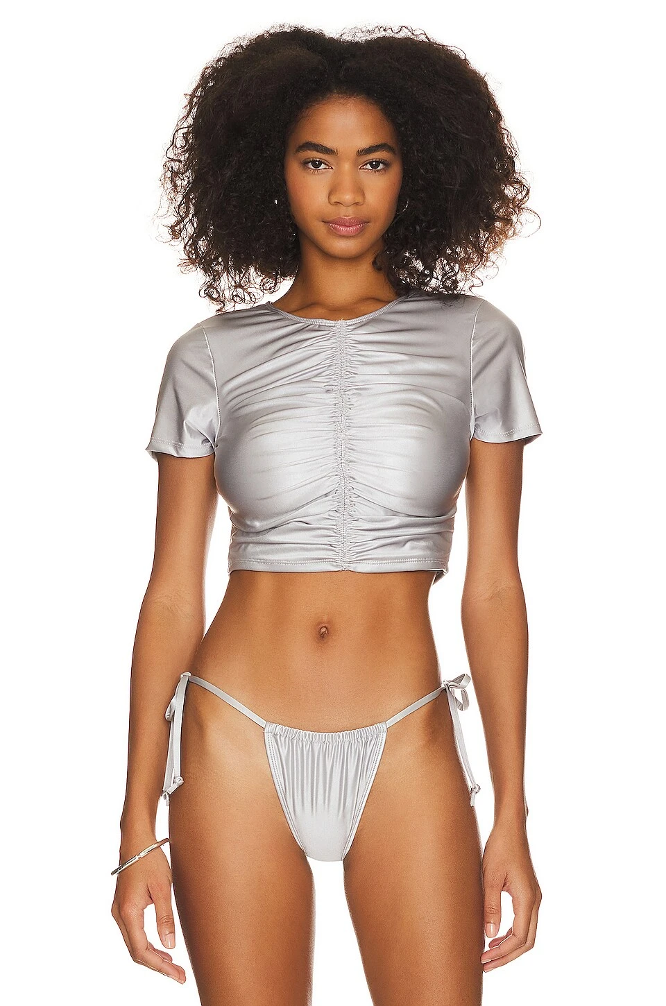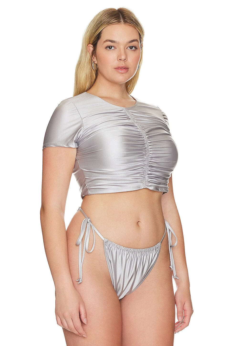 Be the first to review “GOOD AMERICAN Ruched Cropped Tee Silver” Cancel reply