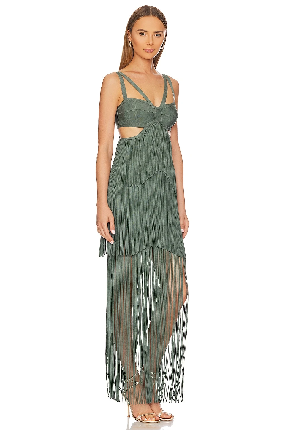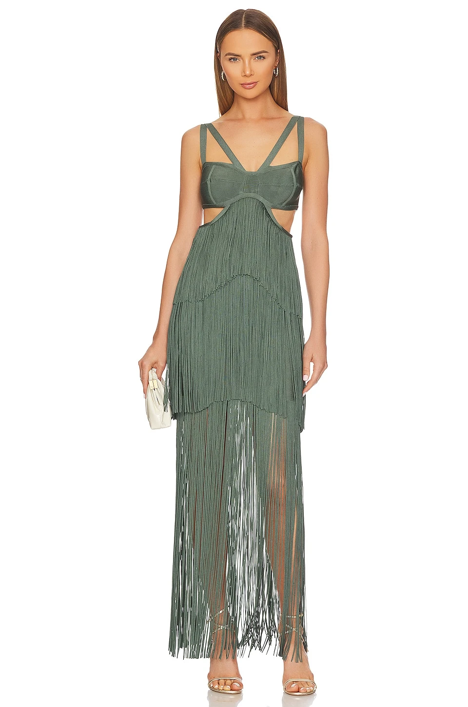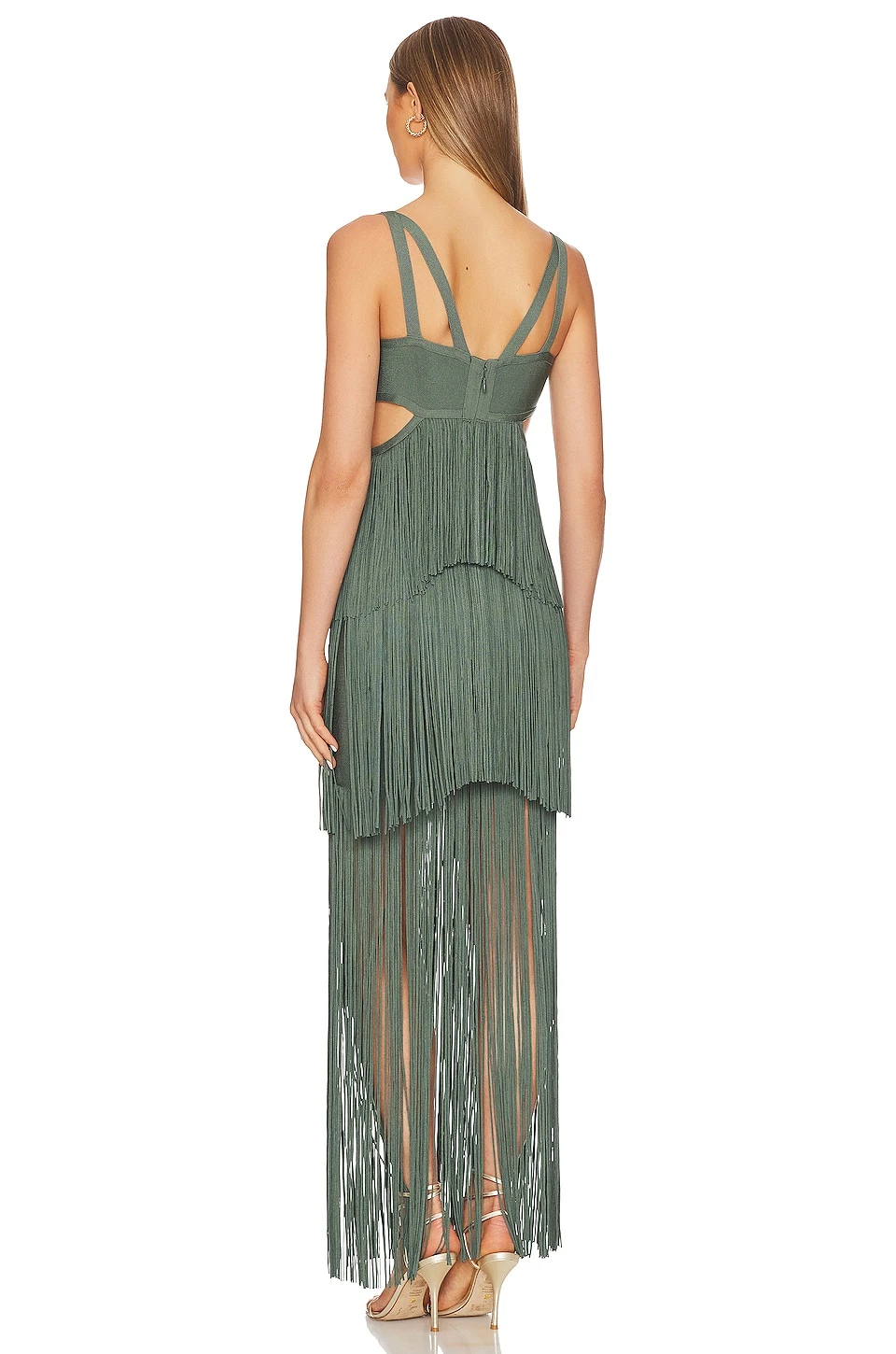 HERVE LEGER Strappy Tiered Fringe Gown Willow