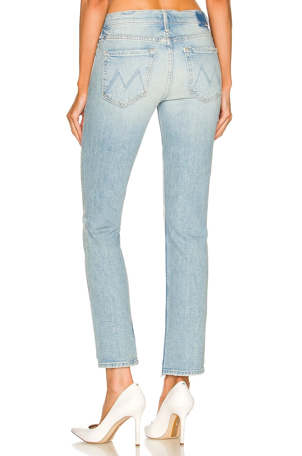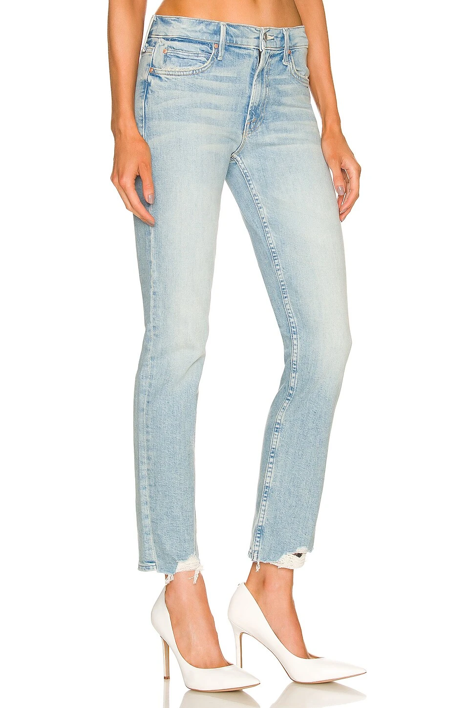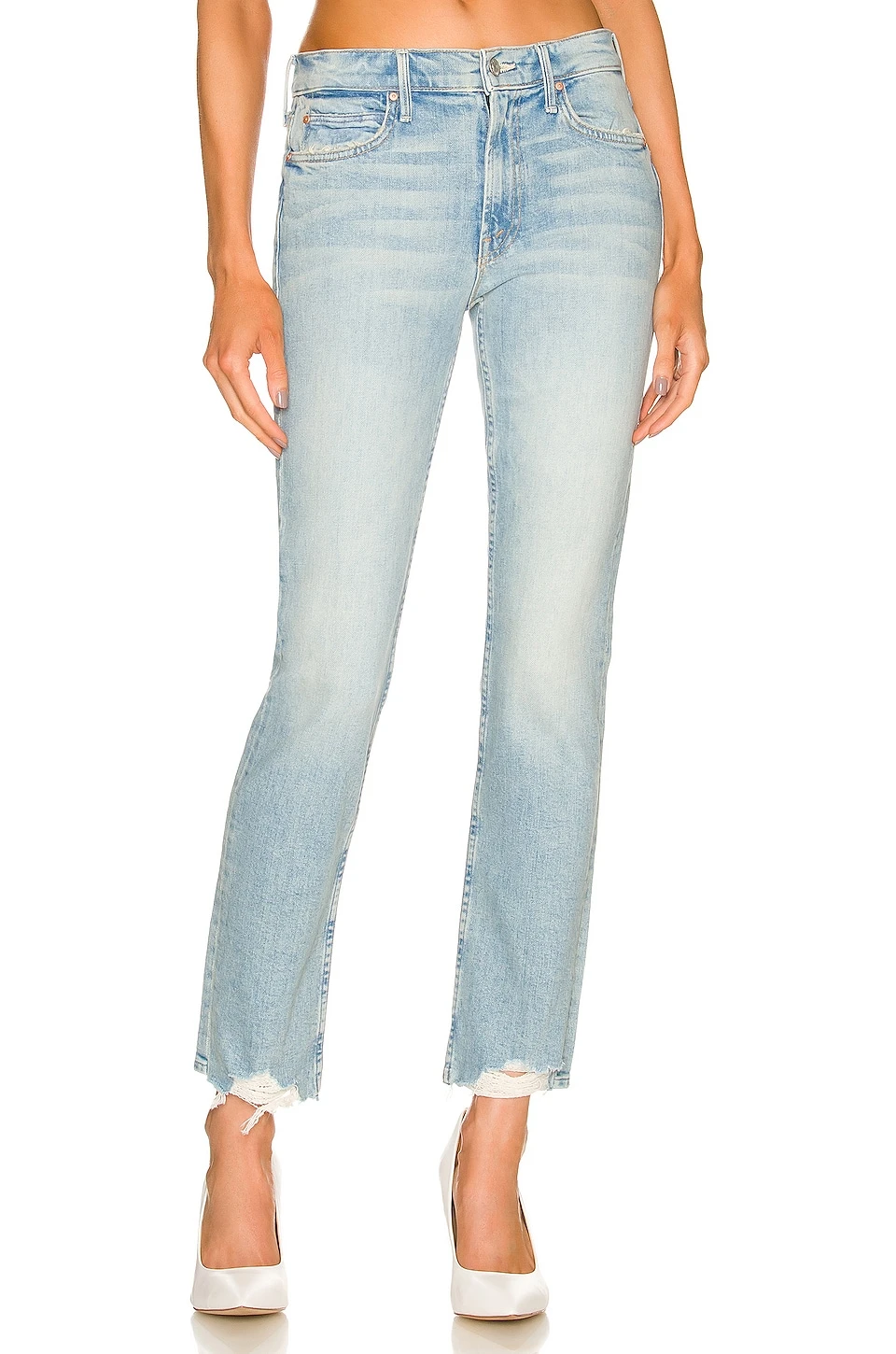 98% cotton, 2% elastane. Made in USA. Machine wash. Zip fly with button closure. 5-pocket styling. Light whiskering. Frayed detail at hem. 12″ at the knee narrows to 11″ at the leg opening. Revolve Style No. MOTH-WJ1191. Manufacturer Style No. 1072-259.