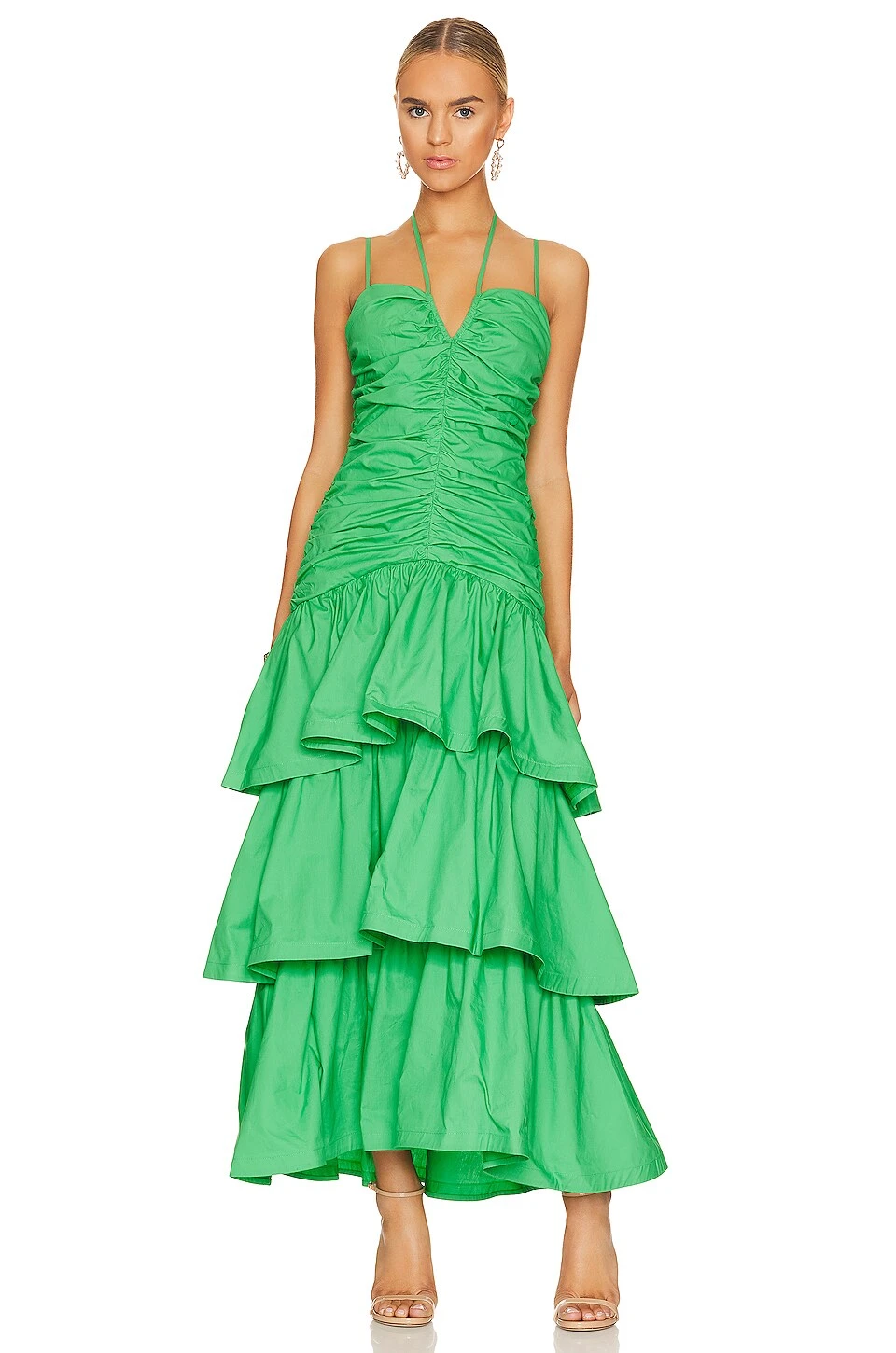 Ruched bodice - Crisp poplin fabric with tiered skirt