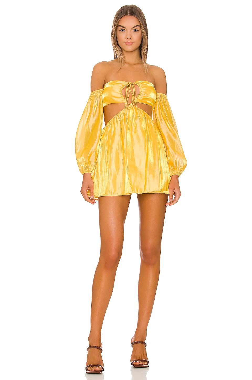 Off shoulder blouson sleeves with elastic trim - Sheen satin finish