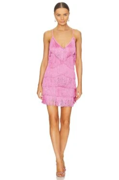 Norma Kamali Fringe Slip Mini Dress Candy Pink