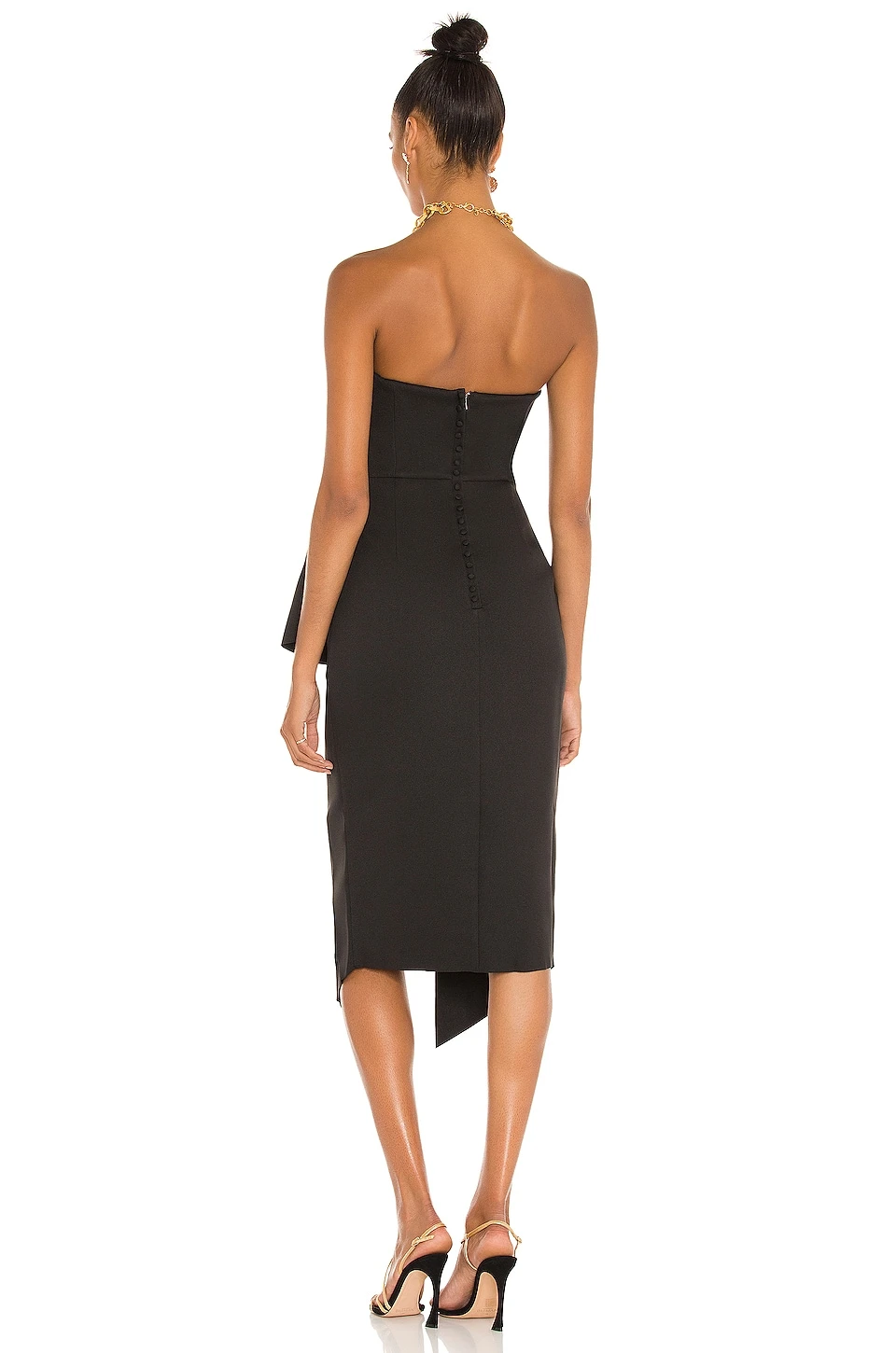 - Mid-weight crepe fabric with raw-cut edges and ruffle detail