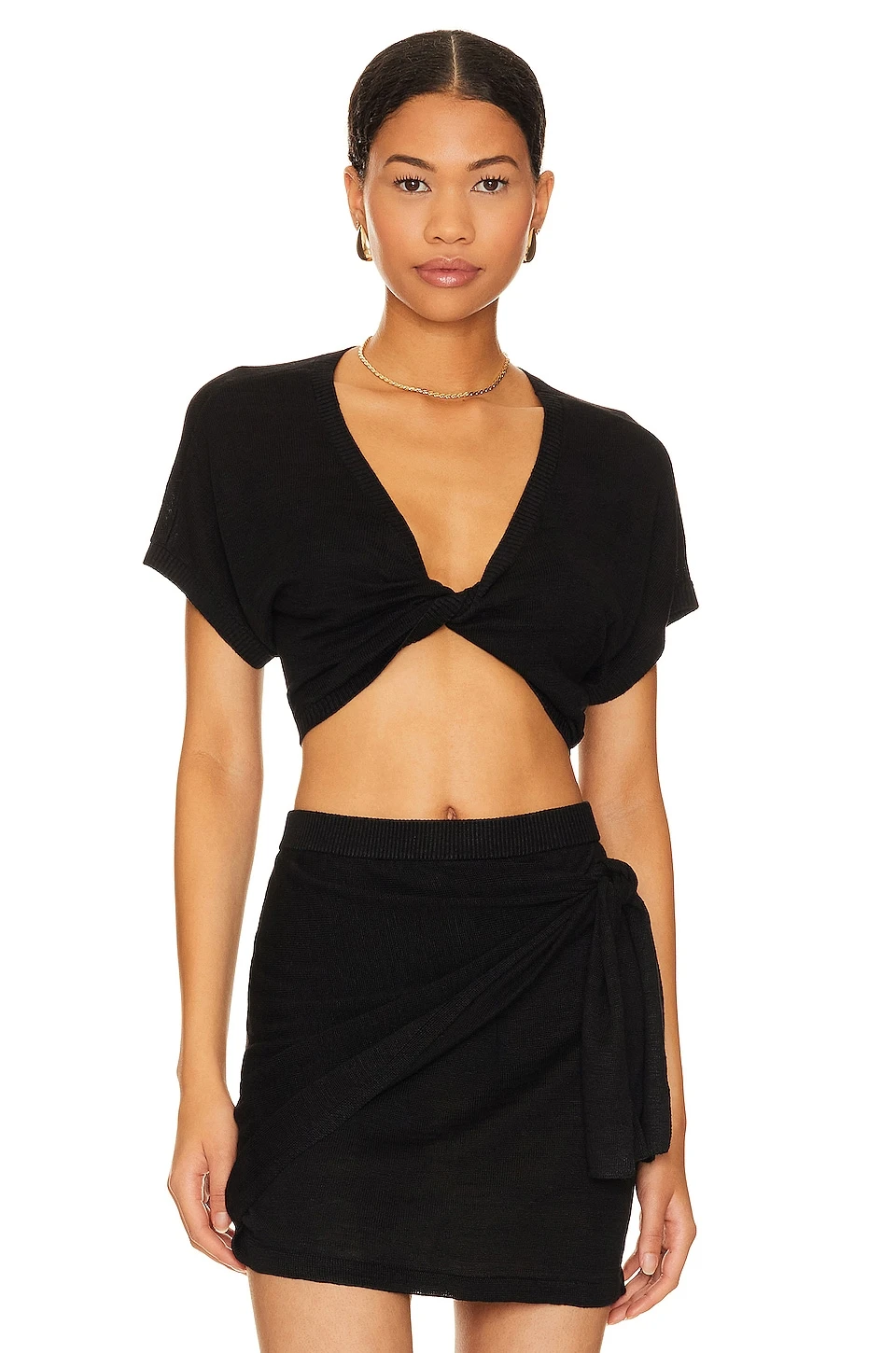 - Front twist detail at hem