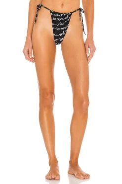 Ruched String Bikini Bottom Logo Scribble Black & White