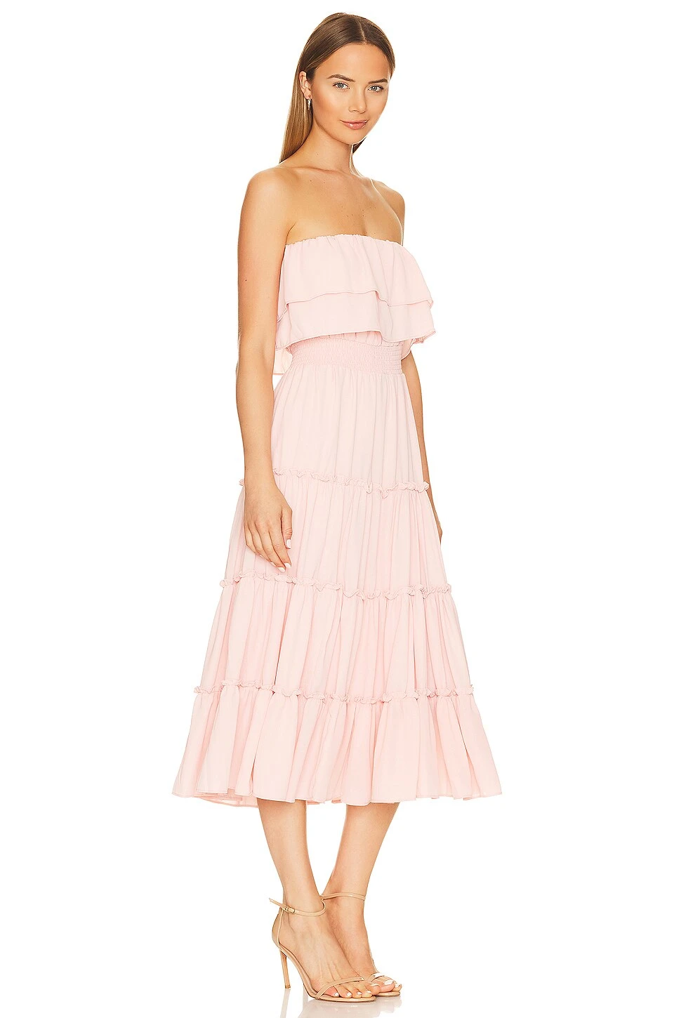 Strapless Ruffle Tiered Maxi Dress Peachskin