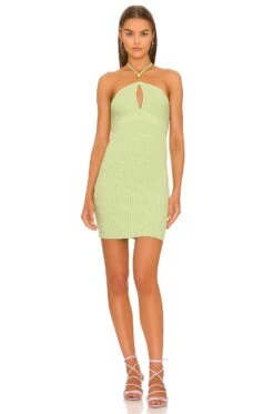 Tabitha Compact Rib Halter Tie Mini Dress Pear
