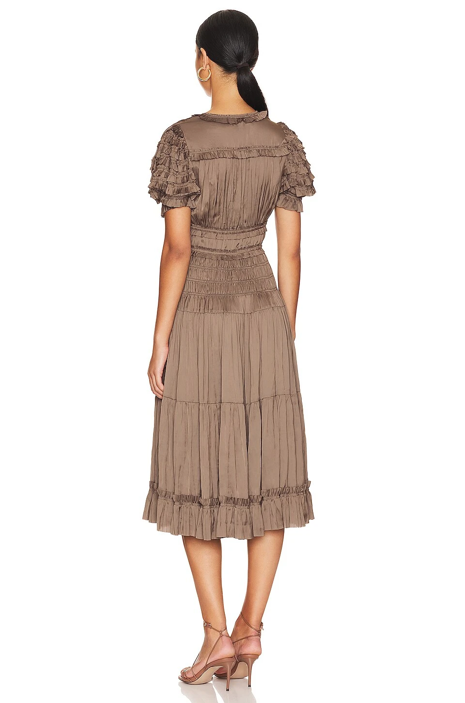 100% polyester. Made in China. Dry clean only. Unlined. Hidden side zipper closure. Front tie detail. Elastic cuffs.Plissé fabric. Revolve Style No. ULLA-WD378. Manufacturer Style No. PS230129.