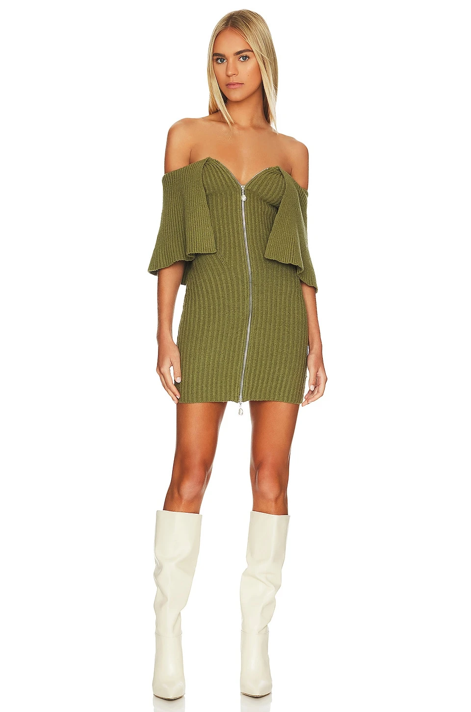 X REVOLVE Miki Off Shoulder Mini Dress Olive Green