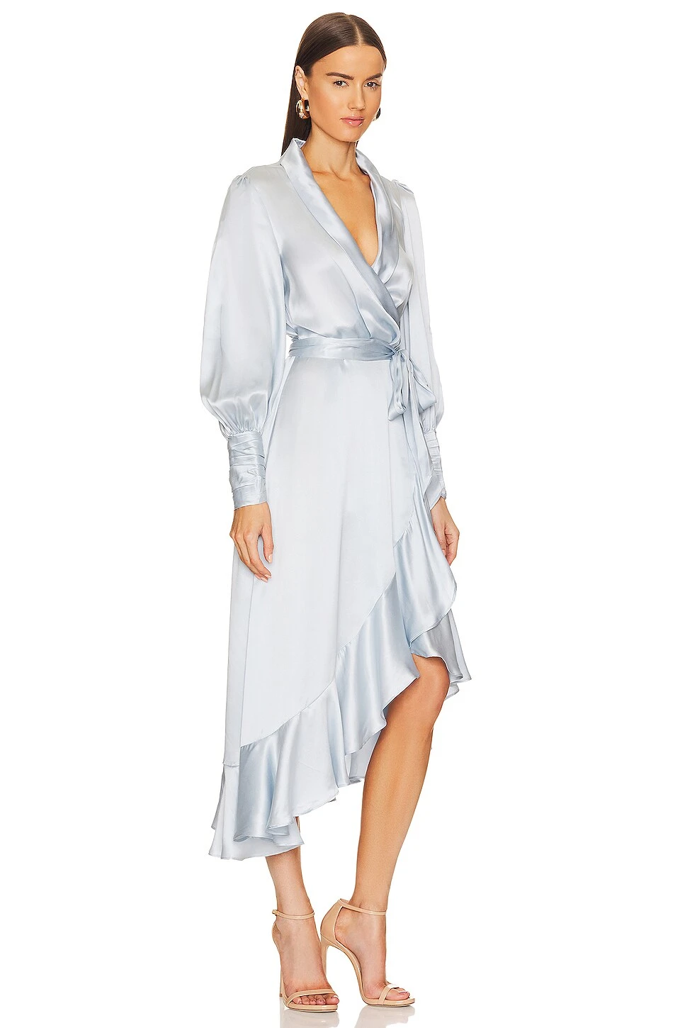 Zimmermann Silk Wrap Midi Dress Ice Blue